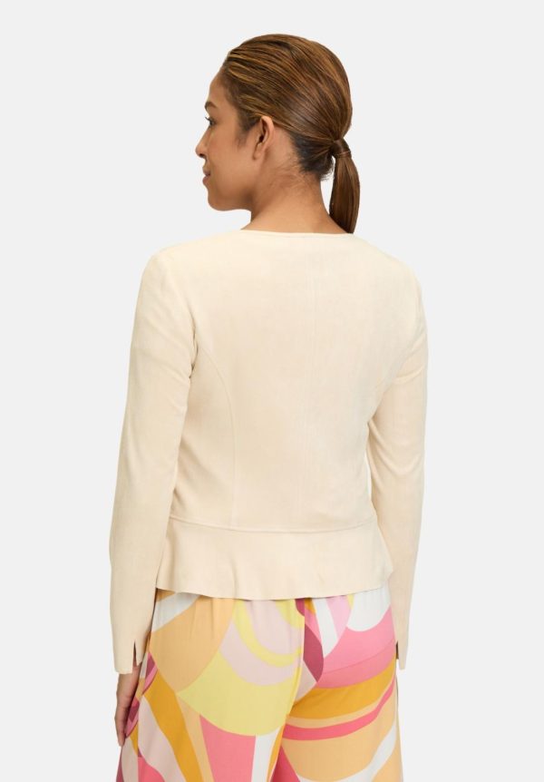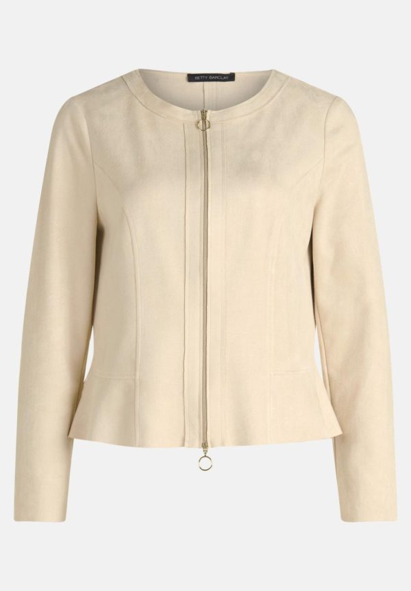 Chic und trendy! Eine Sommerjacke aus Verlourleder von Betty Barclay. Durch den figurnahen Schnitt wird der feminine Stil der Blazerjacke unterstrichen,welche durch einen Reißverschluss zu verschließen ist. Dieses Teil sollte in Ihrem Kleiderschrank nicht fehlen!
