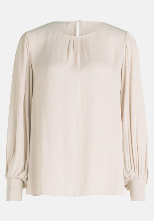 Diese Satin-Bluse begeistert mit ihrer weich fallenden Form und dem femininen Charme. Der Rundhalsausschnitt und die langen Ärmel mit Raffung verleihen ihr eine elegante Silhouette. Die Falten sorgen für einen edlen Look,während die Knopfschlinge hintenein besonderes Detail setzt. In schlichter Uni-Farbe gehalten,lässt sich die Bluse vielseitig kombinieren und eignet sich sowohl für schicke als auch für entspannte Outfits. Ein absolutes Must-have für jeden Kleiderschrank!