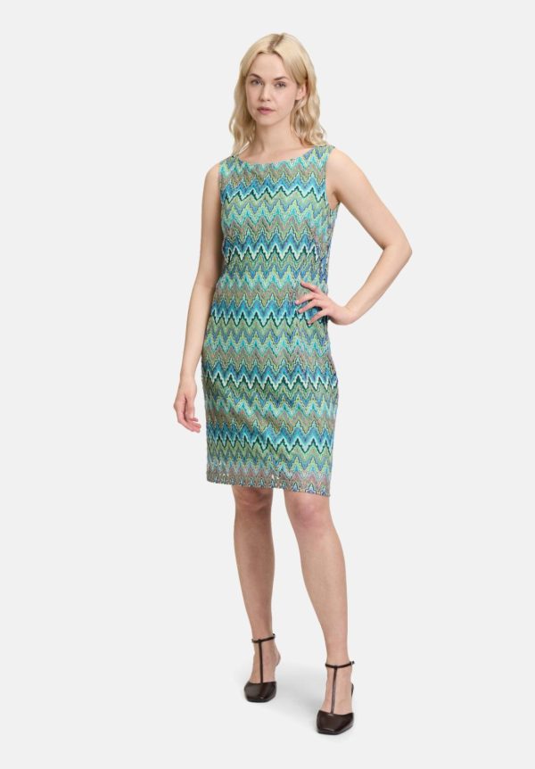 Dieses Etuikleid ist ein absoluter Hingucker und ideal für festliche Anlässe. Mit seinem auffälligen Zickzack-Muster und der ausgestellten Form vereint es Eleganz und Stil. Das ärmellose Design unterstreicht die feminine Silhouette und sorgt für einen modernen,ansprechenden Look. Perfekt,um bei besonderen Gelegenheiten zu glänzen!