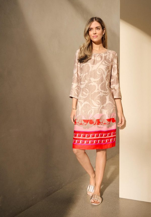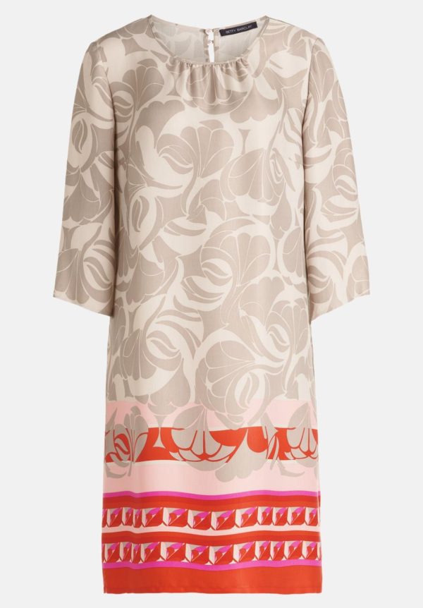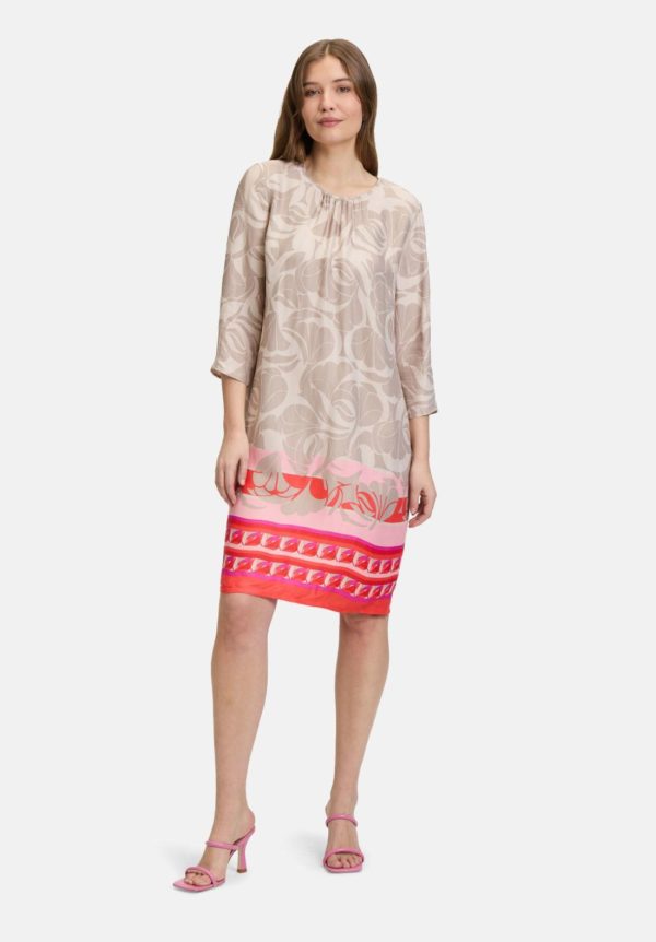 Betty Barclay Kleider | Damen Sommerkleid Mit Rundhalsausschnitt Taupe/rot Mehrfarbig