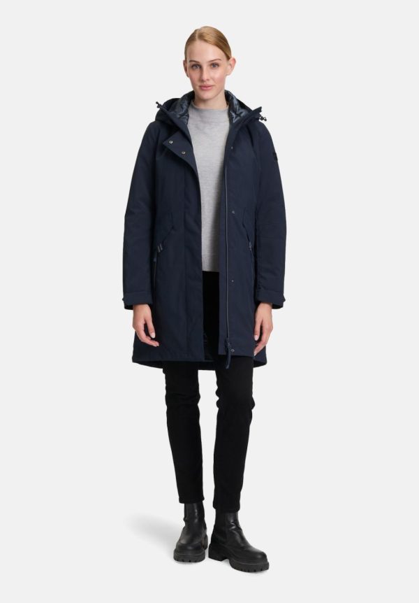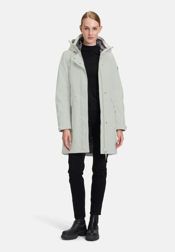 Sportliche 3-in-1-Jacke mit abnehmbarer,weitenregulierbarer Kapuze und herausnehmbarem Innenleben,das sich auch separat tragen lässt. Das wasserabweisende Material schützt zuverlässig bei jedem Wetter,während die leicht taillierte Passform eine feminine Silhouette betont. Mit Stehkragen,Zweiwege-Reißverschluss und Druckknöpfen wird die unifarbene Jacke zum idealen Begleiter für Freizeit,Sport und Reisen.