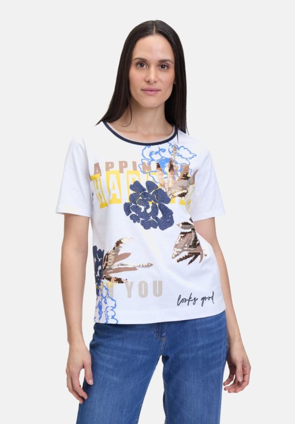 Betty Barclay Shirts | Damen Basic Shirt Mit Rippbündchen Patch White/blue Weiß