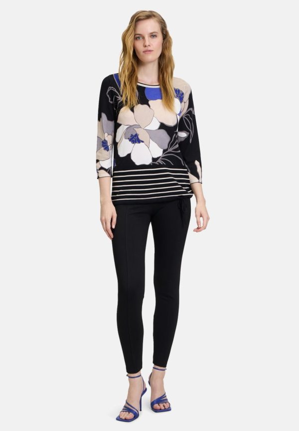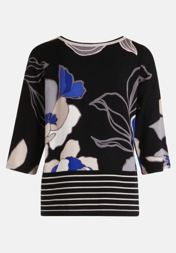 Betty Barclay Strick | Damen Feinstrickpullover Mit Blumenprint Schwarz/blau Schwarz